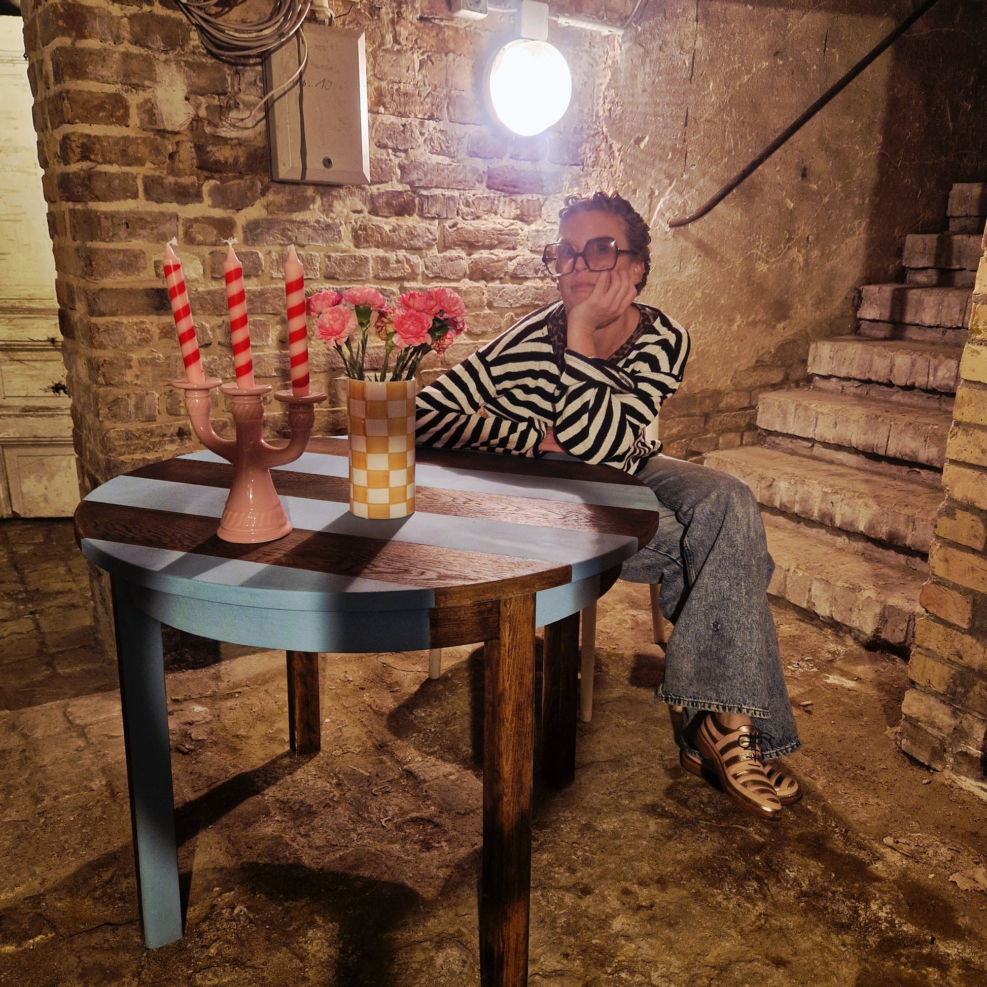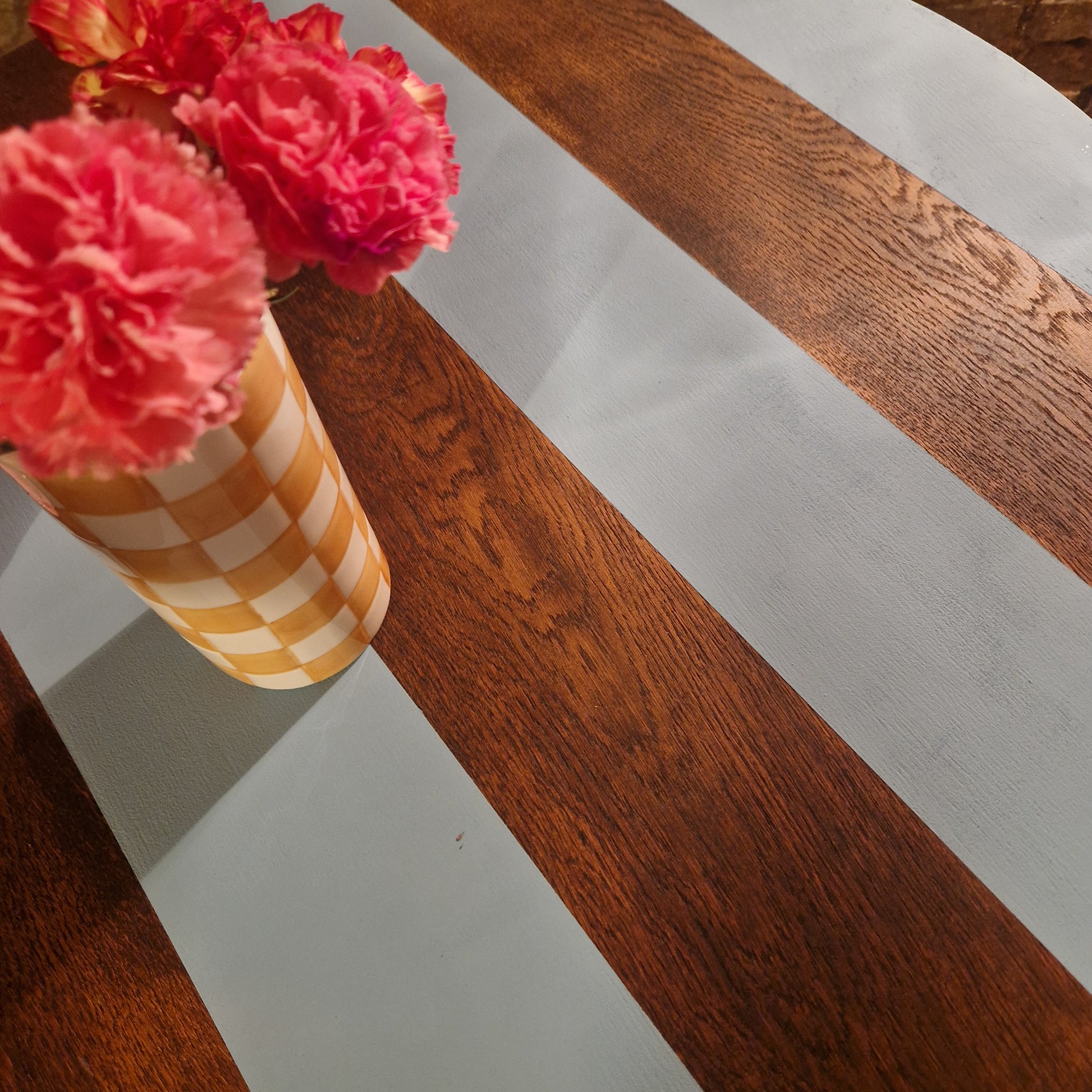 Wooden round table striped
